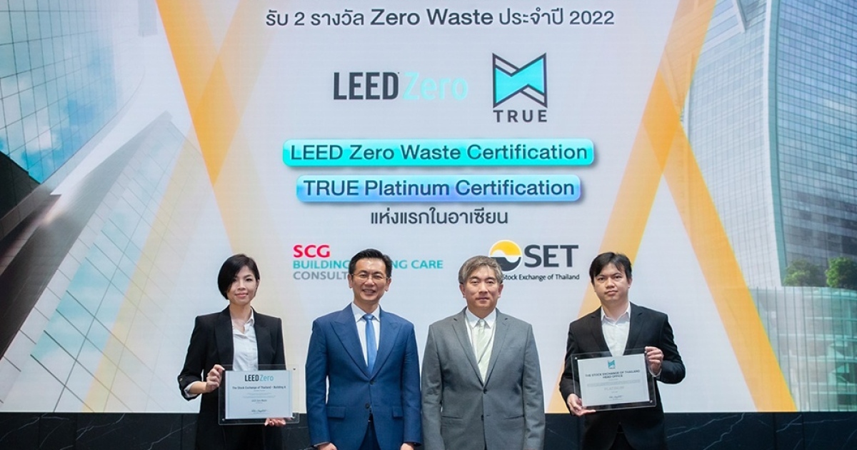 SCG ร่วมมอบรางวัลแก่ตลาดหลักทรัพย์ฯ ในการรับรองมาตรฐานอาคาร 'LEED Zero Waste' และ 'TRUE Certification ในระดับ Platinum' เป็นแห่งแรกในอาเซียน