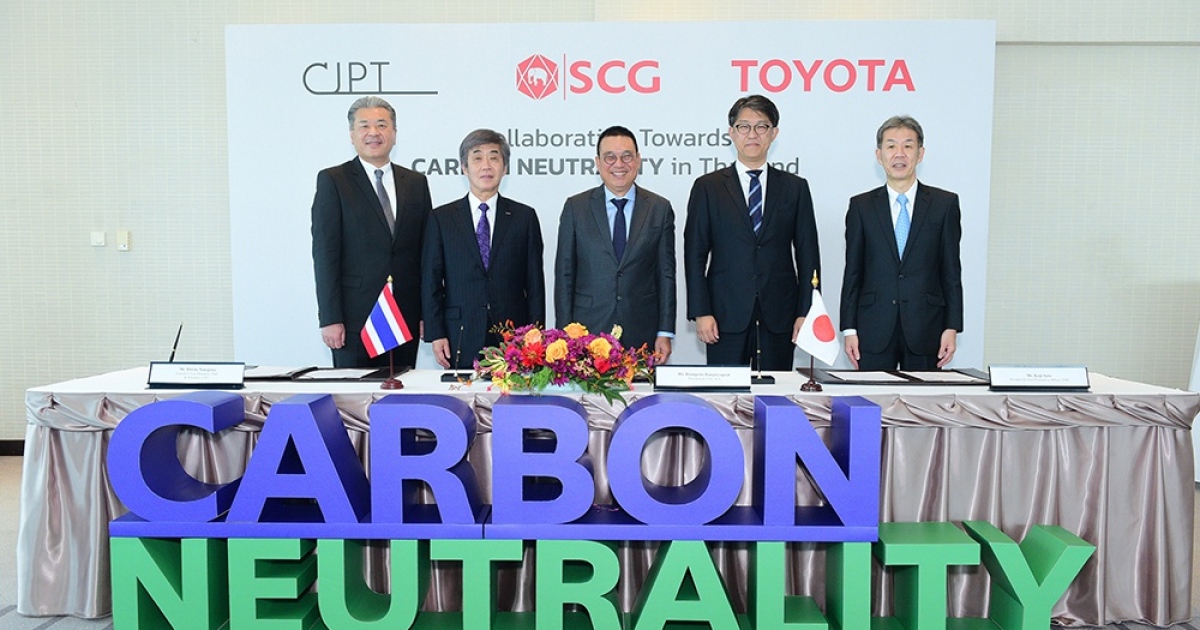 เอสซีจี ผนึกกำลัง โตโยต้า และ CJPT เดินหน้าความร่วมมือพัฒนานวัตกรรมรักษ์โลก 3 ด้าน ได้แก่ ด้านพลังงาน ทั้งการผลิตพลังงานไฮโดรเจนจากชีวมวลและอาหารเหลือทิ้ง การผลิตไฟฟ้าจากพลังงานแสงอาทิตย์-น้ำ ด้านการใช้บิ๊กดาต้า (Big Data) และโครงสร้างพื้นฐานด้านการโทรคมนาคม เพิ่มประสิทธิภาพการขนส่งและโลจิสติกส์ รวมถึงด้านการพัฒนานวัตกรรมยานยนต์ไฟฟ้าที่หลากหลาย ได้แก่ รถยนต์พลังงานไฟฟ้าแบบไฮบริด(HEVs) รถยนต์พลังงานไฟฟ้า (BEVs) รถยนต์พลังงานไฟฟ้าแบบเซลล์เชื้อเพลิง (FCEVs) และ รถยนต์ประหยัดพลังงาน เพื่อให้ประเทศไทยบรรลุเป้าหมายความเป็นกลางทางคาร์บอน ภายในปี 2050