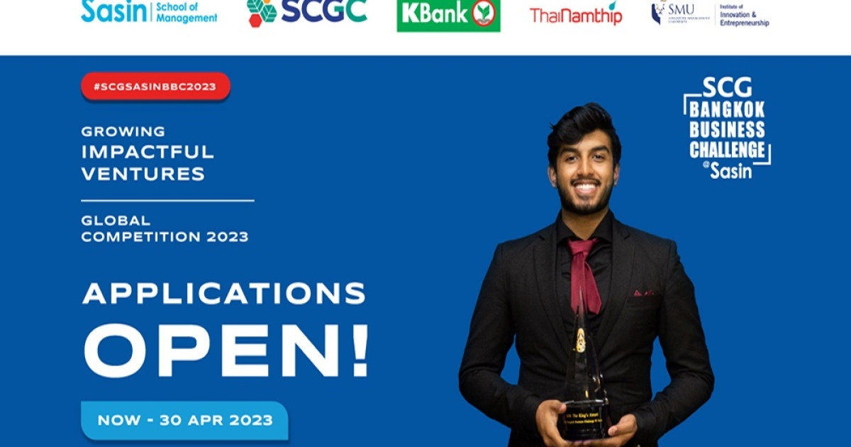 ศศินทร์ X SCGC ยกระดับสตาร์ตอัปไทยเปิดรับสมัครนิสิต นักศึกษา เข้าร่วมแข่งขันพัฒนาแผนธุรกิจระดับโลก SCG Bangkok Business Challenge @ Sasin 2023 รอบ Global Competition ตั้งแต่วันนี้ ถึง 30 เมษายนนี้