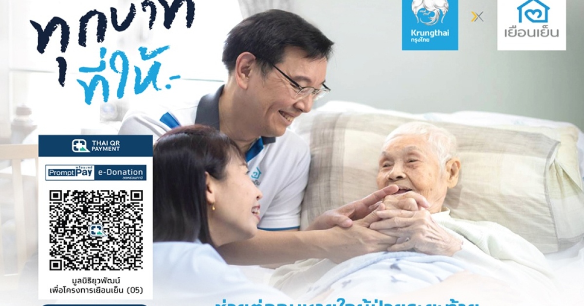 ธนาคารกรุงไทย ส่งมอบความห่วงใย ร่วมดูแลผู้ป่วยระยะท้าย ผู้สูงอายุ ผู้ยากไร้ที่มีปัญหาสุขภาพร้ายแรง และคนพิการ ให้สามารถเข้าถึงระบบสาธารณสุขได้อย่างทั่วถึง ด้วยการดูแลรักษาที่บ้าน ผ่านโครงการ 'กรุงไทย x เยือนเย็น เติม ต่อ ลมหายใจให้ผู้ป่วยระยะท้าย' โดยเชิญชวนร่วมบริจาคเงินเพื่อสนับสนุนการดำเนินงานของ 'เยือนเย็น วิสาหกิจเพื่อสังคม'
