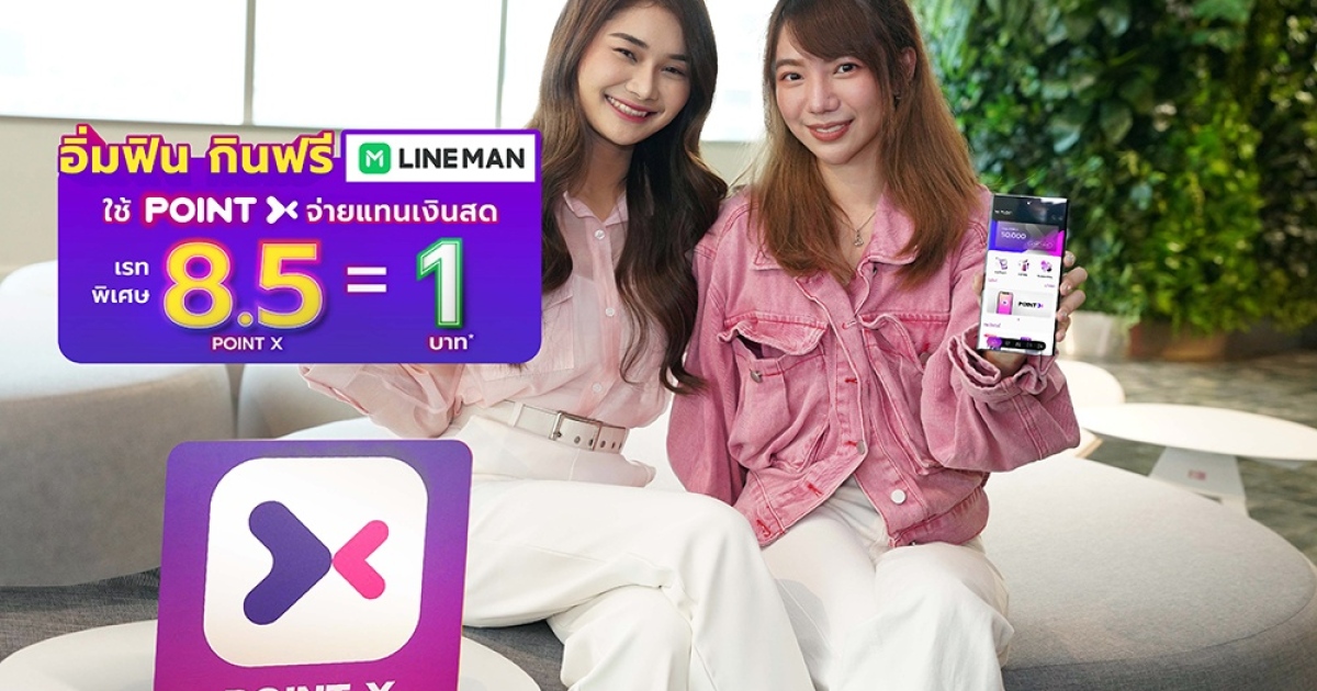 'อิ่มฟิน กินฟรี ไม่ง้อส่วนลด' ใช้ PointX จ่ายแทนเงินสดได้ทุกวัน เมื่อสั่งอาหารผ่านแอปฯ LINE MAN อิ่มฟินด้วยเรทจี๊ดโดนใจ 8.5 PointX = 1 บาท