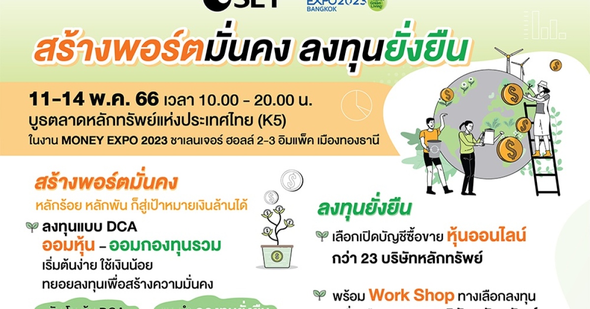 'สร้างพอร์ตมั่นคง ลงทุนยั่งยืน' ที่บูธตลาดหลักทรัพย์ฯ ในงาน Money Expo 11-14 พ.ค.นี้