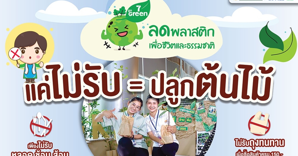 เซเว่น อีเลฟเว่น เดินหน้านโยบาย 7 GO GREEN ชวนลูกค้าทั่วประเทศ เตรียมพร้อมกับชาเลนท์ปลูกต้นไม้บน 7APP ผ่านแคมเปญ “แค่ไม่รับเท่ากับปลูกต้นไม้” ดีเดย์ 15 พ.ค.นี้