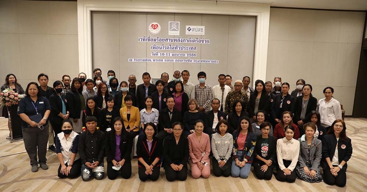 สมาคมเพื่อนโรคไตแห่งประเทศไทย ร่วมกับ สำนักงานหลักประกันสุขภาพแห่งชาติ (สปสช.) และสำนักงานคณะกรรมการสุขภาพแห่งชาติ (สช.) จัดเวทีเชื่อมร้อยสานพลังภาคีเครือข่ายเพื่อนโรคไตทั่วประเทศ ระหว่างวันที่ 10-11 มิ.ย. 2566 โดยมีสมาชิกเครือข่ายเพื่อนโรคไตจาก 6 ภูมิภาค พยาบาล ผู้ดูแล จิตอาสา และตัวแทนหน่วยงานภาครัฐที่เกี่ยวข้องรวมประมาณ 70 คนเข้าร่วมประชุม
