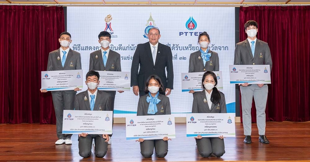ปตท.สผ. มอบเงินรางวัลพิเศษให้นักกีฬาเรือใบ ฉลองความสำเร็จจากซีเกมส์ ครั้งที่ 32 นายมนตรี ลาวัลย์ชัยกุล ประธานเจ้าหน้าที่บริหาร บริษัท ปตท.สำรวจและผลิตปิโตรเลียม จำกัด (มหาชน) (แถวหลัง กลาง) มอบเงินรางวัลพิเศษจำนวน 750,000 บาท ให้กับนักกีฬาแข่งเรือใบไทยทั้ง 7 คน เพื่อเป็นขวัญและกำลังใจในการแข่งขัน หลังจากคว้าเหรียญรางวัลจากการแข่งขันซีเกมส์ ครั้งที่ 32 ที่กรุงพนมเปญ ราชอาณาจักรกัมพูชา ในงานเลี้ยงแสดงความยินดีฉลองความสำเร็จ ณ อาคารราชนาวิกสภา บางกอกน้อย กรุงเทพฯ