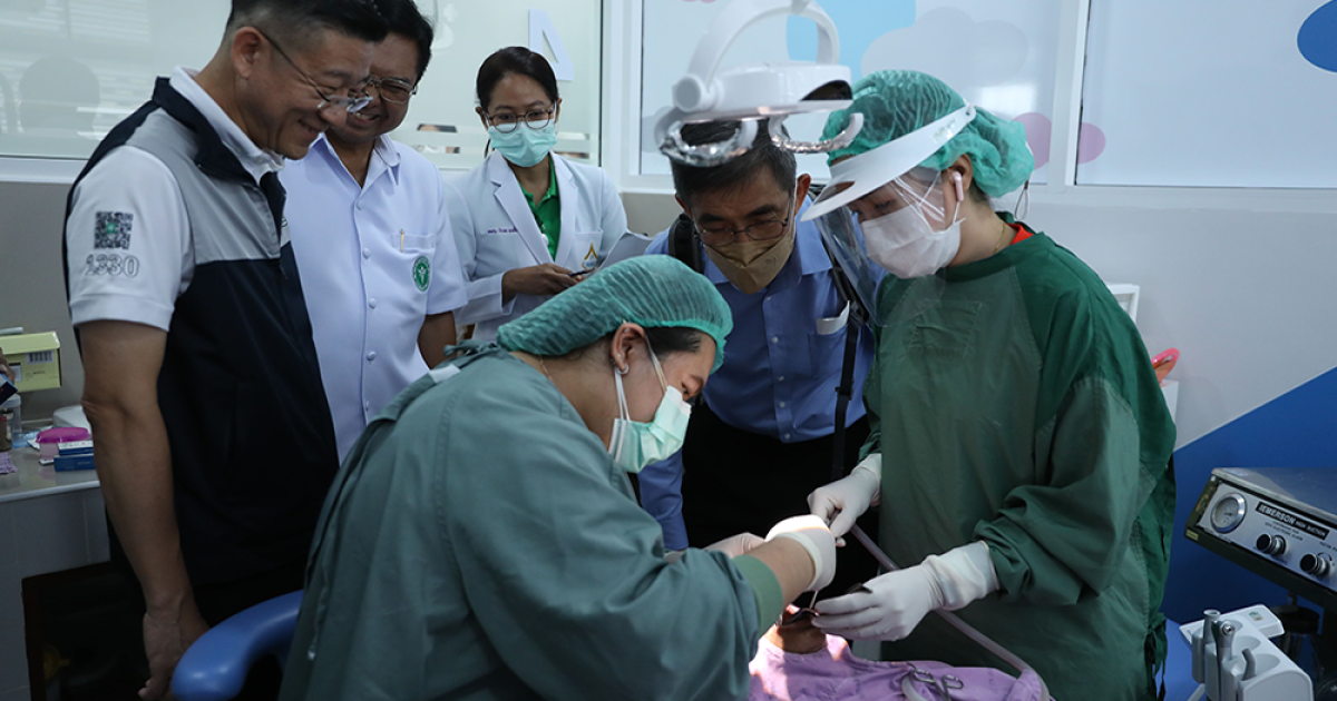 เมื่อวันที่ 1 มิถุนายน 2566 นพ.สุวิทย์ วิบุลผลประเสริฐ กรรมการหลักประกันสุขภาพแห่งชาติ (บอร์ดสปสช.) พร้อมด้วย ทพ.อรรถพร ลิ้มปัญญาเลิศ รองเลขาธิการสำนักงานหลักประกันสุขภาพแห่งชาติ (สปสช.) ทพ.กวี วีระเศรษฐกุล ผอ.สปสช.เขต 8 อุดรธานี และคณะ ลงเยี่ยมหน่วยบริการพื้นที่เขตสุขภาพที่ 8 เพื่อติดตามผลการดำเนินงานรับฟังความคิดเห็น 'โครงการนำร่องการใช้ผลิตภัณฑ์รากฟันเทียมในบัญชีนวัตกรรมไทย' สำหรับให้การรักษาฝังรากฟันเทียมแก่ผู้ใช้สิทธิหลักประกันสุขภาพแห่งชาติ (บัตรทอง) ที่ไม่มีฟันทั้งช่องปาก ซึ่งดำเนินการโดยโรงพยาบาลหนองคาย และหน่วยบริการเครือข่ายในพื้นที่เขตสุขภาพที่ 8 ณ โรงพยาบาลหนองคาย อ.เมือง จ.หนองคาย