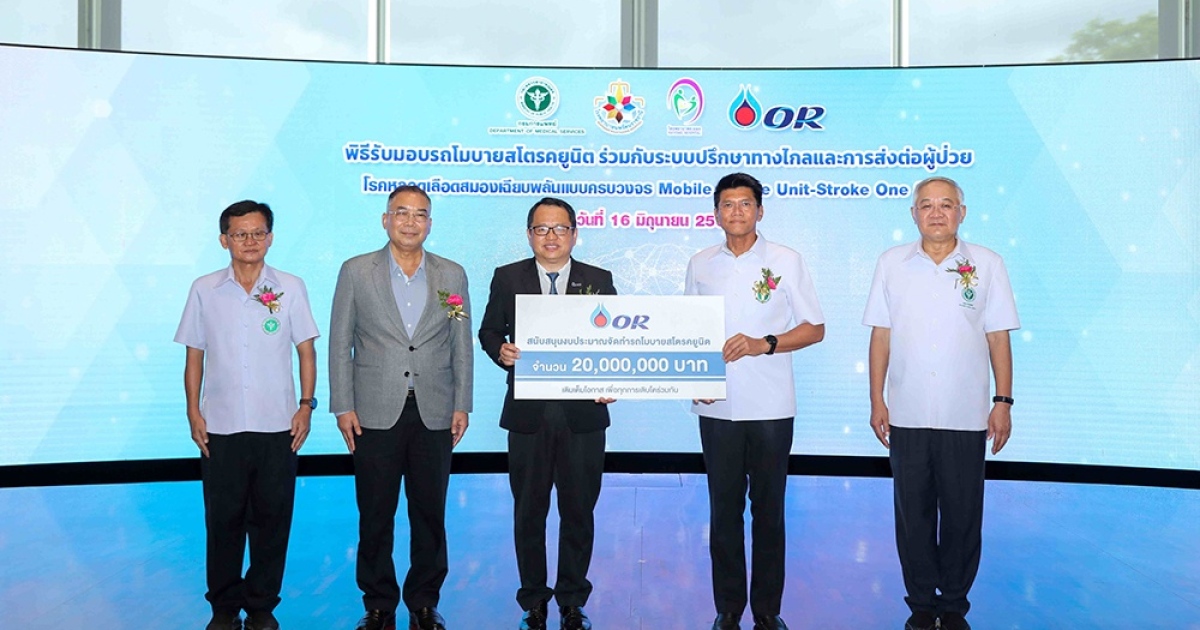 'OR' ส่งมอบรถโมบายสโตรคยูนิตร่วมกับระบบปรึกษาทางไกลและการส่งต่อผู้ป่วยโรคหลอดเลือดสมองเฉียบพลันแบบครบวงจรเพื่อให้บริการผู้ป่วยในจังหวัดระยอง