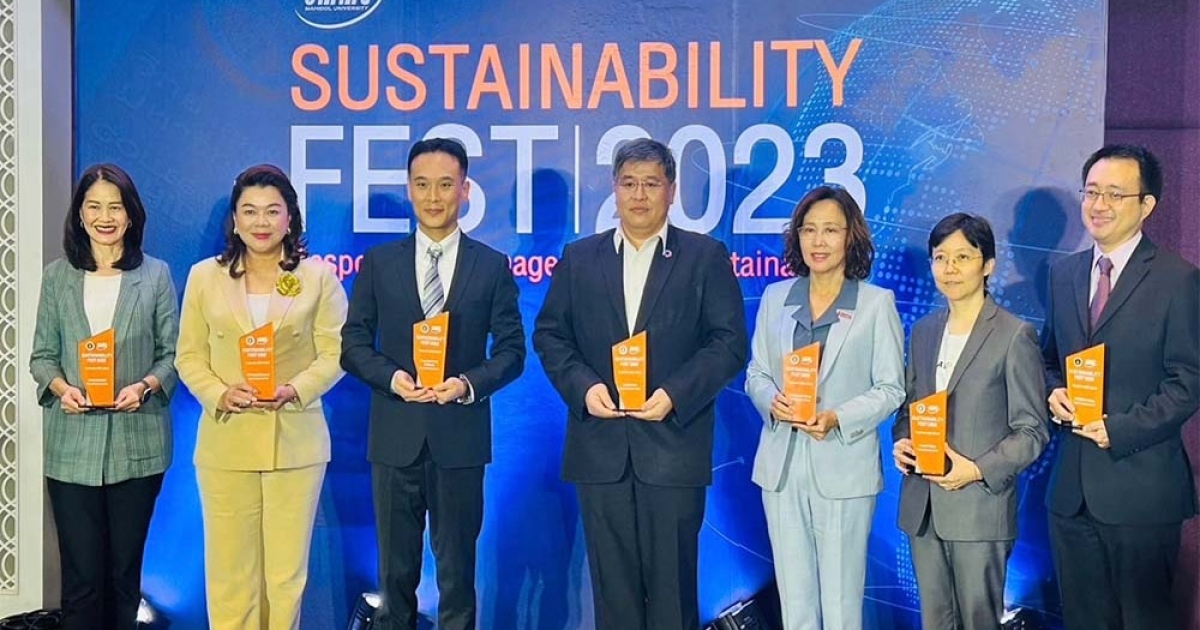 เอสซีจี โดย นางวีนัส อัศวสิทธิถาวร ผู้อำนวยการสำนักงาน Enterprise Brand Management รับรางวัล 'CMMU - ESG AWARD' ซึ่งวิทยาลัยการจัดการ มหาวิทยาลัยมหิดล (CMMU) มอบให้กับบริษัทมหาชนที่เปิดเผยข้อมูลด้านความยั่งยืนอย่างมีคุณภาพ ถูกต้อง ตรงประเด็น ดำเนินธุรกิจตามแนวทาง ESG (Environmental, Social, Governance)