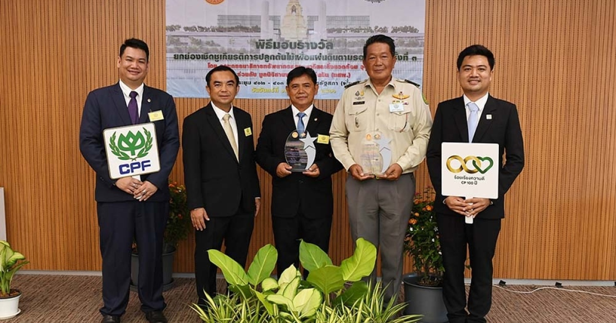 พิธีมอบรางวัลดังกล่าว ได้รับเกียรติจาก พลเอก สุรศักดิ์ กาญจนรัตน์ ประธานคณะกรรมาธิการทรัพยากรธรรมชาติและสิ่งแวดล้อม วุฒิสภา เป็นประธานเปิดงานและมอบรางวัลฯ ซึ่งในปี 2566 จัดขึ้นเป็นครั้งที่ 3 และในปีนี้ โครงการปลูกต้นไม้และปลูกป่าของซีพีเอฟ ที่เกิดจากความร่วมมือกับพันธมิตร ได้รับรางวัลฯ 2 โครงการ โดยมี นายพิเชษฐ์ ใหญ่แก่นทราย ประธานหมู่บ้านเกษตรกรรมกำแพงเพชร เป็นตัวแทนรับรางวัลฯ โครงการสวนป่าชุมชนหมู่บ้านเกษตรกรรมกำแพงเพชร พร้อมด้วยตัวแทนซีพีเอฟ และ นายถนอมพงษ์ สังข์ธูป ผู้อำนวยการส่วนส่งเสริมการปลูกป่า สำนักจัดการทรัพยากรป่าไม้ที่ ๕ (สระบุรี) กรมป่าไม้ และ นายสุรพัฒน์ สายเพชร ตัวแทนคณะทำงานยุทธศาสตร์ ซีพีเอฟ รักษ์นิเวศ ลุ่มน้ำป่าสัก เขาพระยาเดินธง เข้ารับรางวัลฯ จัดโดย คณะทำงานโครงการสมัชชาปลูกต้นไม้เพื่อแผ่นดินตามรอยพ่อ ร่วมกับ มูลนิธิสานพลังเพื่อแผ่นดิน (มสผ.) ร่วมด้วย นายแพทย์อำพล จินดาวัฒนะ ประธานคณะทำงานโครงการสมัชชาปลูกต้นไม้เพื่อแผ่นดินตามรอยพ่อ ณ ห้องประชุม 402-403 ชั้น 4 สัปปายะสภาสถาน อาคารรัฐสภา กรุงเทพฯ.