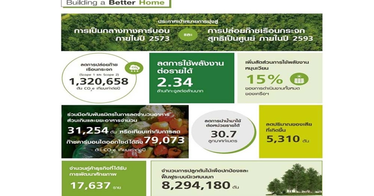 เครือเจริญโภคภัณฑ์ (ซีพี) ได้จัดทำและเผยแพร่รายงานความยั่งยืนประจำปี 2565 ภายใต้แนวคิด 'ผู้นำด้านการพัฒนาที่ยั่งยืนเพื่อพรุ่งนี้ที่ดีกว่า' เพื่อเปิดเผยผลการดำเนินงานที่มุ่งมั่นและตั้งใจในการขับเคลื่อนเป้าหมายยุทธศาสตร์ด้านความยั่งยืนของเครือเจริญโภคภัณฑ์สู่ปี 2573 อย่างโปร่งใสและเป็นรูปธรรมรวมทั้งสิ้น 15 เป้าหมายภายใต้กรอบการทำงาน 3 เสาหลักคือ Heart - Health – Home ที่ครอบคลุมทุกมิติของความยั่งยืนทั้งด้านสังคม เศรษฐกิจ และสิ่งแวดล้อม และสอดคล้องกับเป้าหมายการพัฒนาที่ยั่งยืนขององค์การสหประชาชาติ (SDGs) โดยรายงานฉบับนี้ถือเป็นการสะท้อนถึงความมุ่งมั่นที่ไม่เปลี่ยนแปลงของเครือซีพี ในการมุ่งเน้นให้เกิดความยั่งยืนระยะยาว พร้อมทั้งให้ความสำคัญในการสร้างความร่วมมือกับผู้มีส่วนเกี่ยวข้องตลอดห่วงโซ่คุณค่าของเครือฯ เพื่อประโยชน์สูงสุดแก่ประเทศชาติ สังคม และองค์กร มุ่งหวังให้ทุกภาคส่วนเดินหน้าพัฒนาเติบโตไปพร้อมกันอย่างยั่งยืนในทุกมิติ