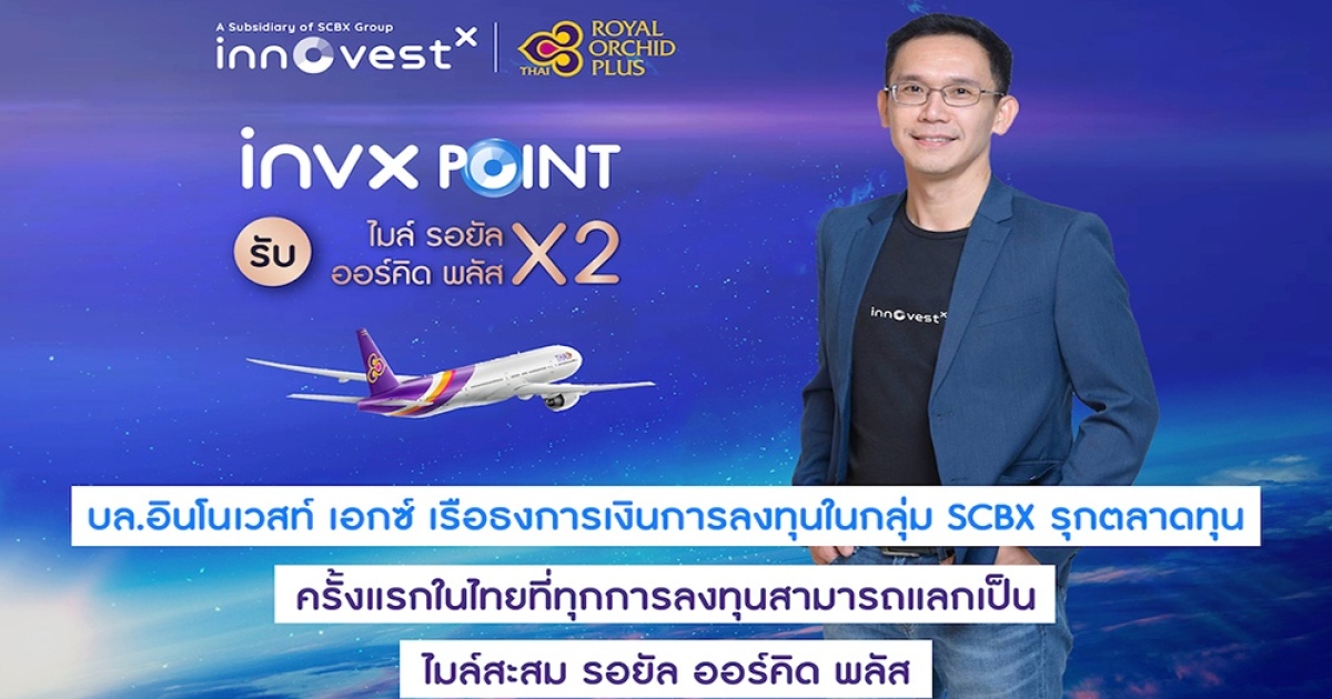 บริษัทหลักทรัพย์ อินโนเวสท์ เอกซ์ จำกัด (InnovestX Securities Co., Ltd.) เรือธงด้านการเงินการลงทุนของกลุ่ม SCBX เดินหน้ารุกตลาดทุน ร่วมกับ บริษัท การบินไทย จำกัด (มหาชน) ผสานศักยภาพของสองผู้นำธุรกิจ เชื่อมโลกการลงทุนเข้ากับการเดินทางอย่างไร้รอยต่อภายใต้แนวคิด “Invest & Fly” ครั้งแรกในเมืองไทยที่ให้นักลงทุนสามารถใช้คะแนนสะสมจากการลงทุนในทุกสินทรัพย์ (InnovestX Point) แลกไมล์สะสม รอยัล ออร์คิด พลัส (ROP) กับการบินไทยได้ง่ายๆ เพียงลงทุน ก็บินได้ไกลขึ้น ตอบโจทย์ทั้งด้านการลงทุนและไลฟ์สไตล์ในปัจจุบัน