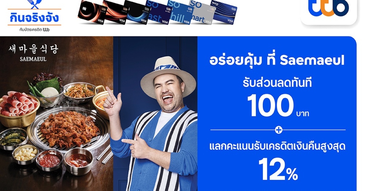 บัตรเครดิต ttb มอบส่วนลด 100 บาทพร้อมแลกคะแนนรับเครดิตเงินคืนสูงสุด 12% ที่ร้านปิ้งย่างจากเกาหลีชื่อดัง SAEMAEUL SIKDANG