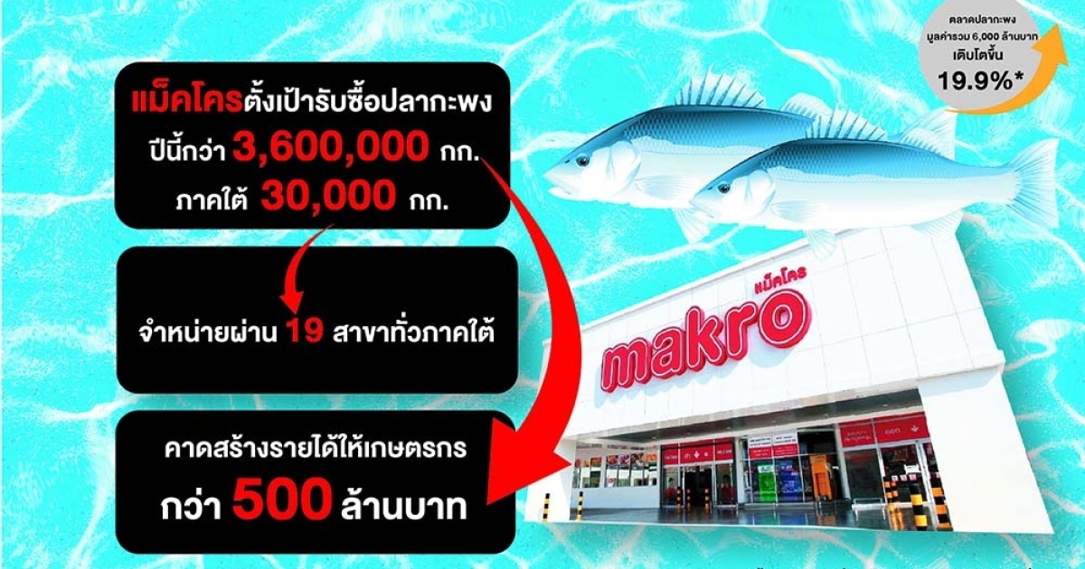 แม็คโครตอกย้ำนโยบายเคียงข้างเกษตรกรไทย เดินหน้าสนับสนุนการกระจายสินค้าสู่ทุกสาขาทั่วประเทศตั้งเป้ารับซื้อปลากะพงทั่วไทยปีนี้รวมกว่า 3,600,000 กิโลกรัม ล่าสุดรับซื้อปลากะพงกว่า 30,000 กิโลกรัมจากเกษตรกรในพื้นที่อำเภอเทพา และอำเภอจะนะ จังหวัดสงขลา เริ่มจำหน่ายที่แม็คโคร 19 สาขาทั่วภาคใต้ ตั้งแต่วันนี้จนถึงเดือนตุลาคม 2566 พร้อมลงพื้นที่เยี่ยมชมแหล่งเลี้ยงปลา คัดสรรวัตถุดิบคุณภาพจากแหล่งผลิตถึงมือผู้ประกอบการและผู้บริโภค