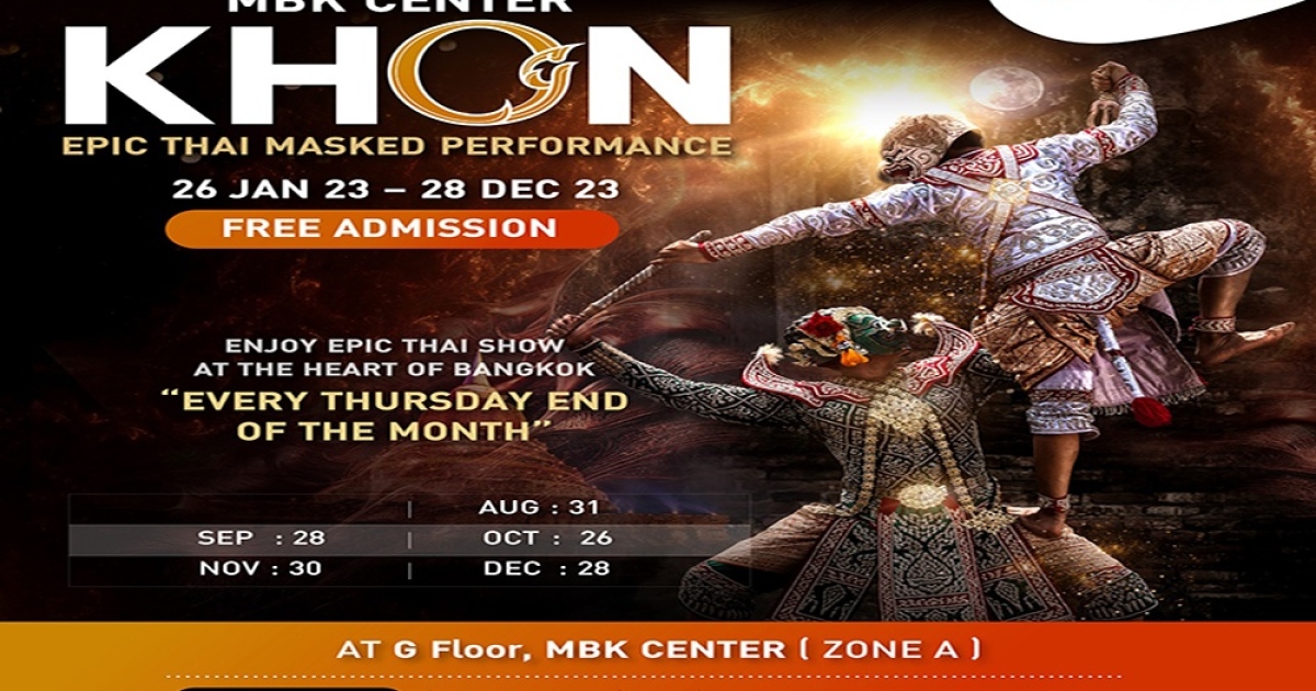 ศูนย์การค้าเอ็ม บี เค เซ็นเตอร์ ชวนชมการแสดงนาฏศิลป์ชั้นสูง “โขน” ทุกวันพฤหัสบดีสุดท้ายของเดือน โดยในเดือนสิงหาคมพร้อมเปิดม่านการแสดงให้ชมฟรีในวันพฤหัสบดีที่ 31 สิงหาคม 2566 ณ Meeting Point บริเวณชั้น G โซน A จัดให้ชม 2 รอบการแสดงในเวลา 15.00 น. และ 18.00 น. นำเสนอเรื่องราวจากวรรณกรรมชั้นครูเรื่อง รามเกียรติ์ พบกับหนุมาน ตัวละครขุนศึกเอกที่เป็นที่รู้จักกันดี พร้อมกับตัวละครต่าง ๆ ที่หยิบยกมาเป็นตอนสั้น ๆ อาทิ หนุมานจับนางสุพรรณมัจฉา, หนุมานจับนางเบญกาย, เมขลากับรามสูร, รจนาเลือกคู่ พร้อมการแสดงผสมผสานโขนไทยและการเชิดหุ่นละครเล็กหมุนเวียนมาแสดงให้ได้ชม ฟรี ! ทุกวันพฤหัสบดีสุดท้ายของเดือน