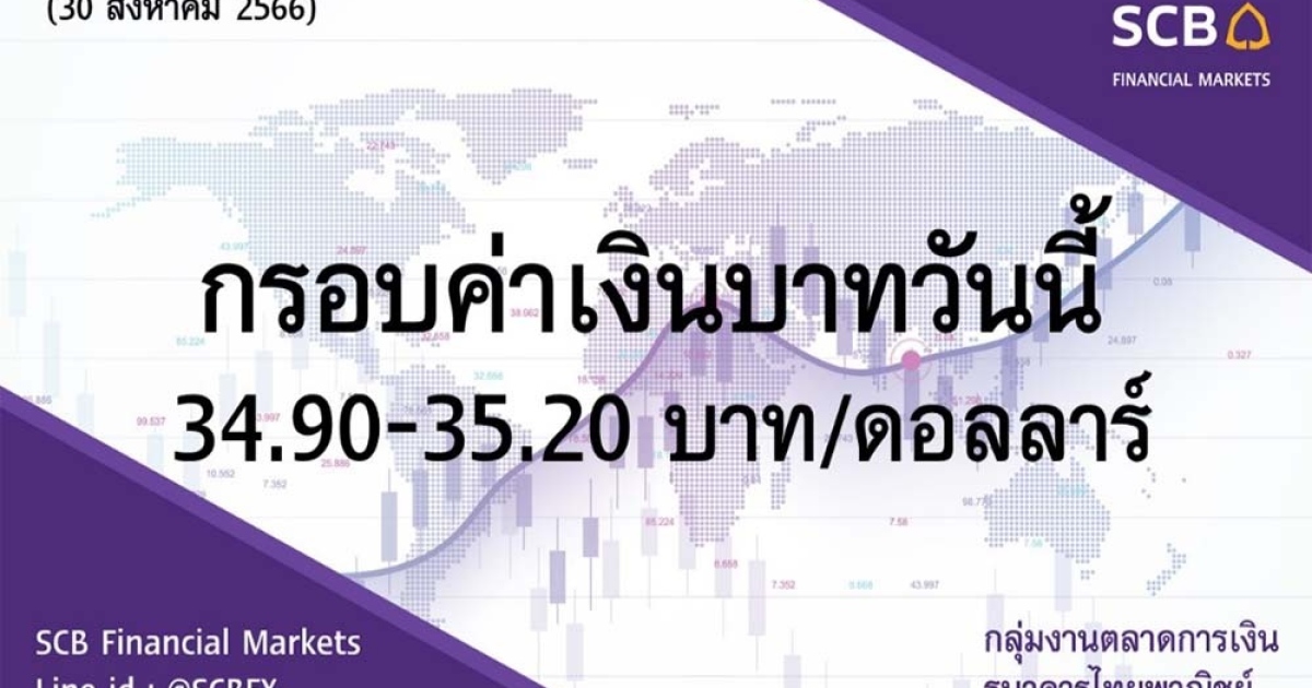 กลุ่มงานตลาดการเงิน ธนาคารไทยพาณิชย์ (SCB Financial Markets) ค่าเงินบาทประจำวันที่ 30 สิงหาคม 2566
