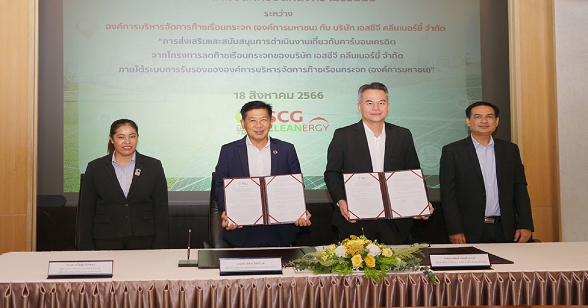 เอสซีจี คลีนเนอร์ยี่ ผู้ให้บริการผลิตและจำหน่ายไฟฟ้าจากพลังงานแสงอาทิตย์แบบครบวงจรให้กับกลุ่มนิคมอุตสาหกรรม โรงงาน ห้างสรรพสินค้า โรงแรม โรงพยาบาล โดย นายอรรถพงศ์ สถิตมโนธรรม ประธานเจ้าหน้าที่บริหาร บริษัท เอสซีจี คลีนเนอร์ยี่ จำกัด และ นายเกียรติชาย ไมตรีวงษ์ ผู้อำนวยการองค์การบริหารจัดการก๊าซเรือนกระจก (องค์การมหาชน) หรือ TGO ร่วมลงนามบันทึกข้อตกลงความร่วมมือ “การส่งเสริมและสนับสนุนการดำเนินงานเกี่ยวกับคาร์บอนเครดิตจากโครงการลดก๊าซเรือนกระจกของบริษัท เอสซีจี คลีนเนอร์ยี่ จำกัด ภายใต้ระบบการรับรองขององค์การบริหารจัดการก๊าซเรือนกระจก (องค์การมหาชน)” เพื่อพัฒนาแพลตฟอร์มการซื้อขายคาร์บอนเครดิตพร้อมกับการจำหน่ายไฟฟ้าจากพลังงานสะอาด
