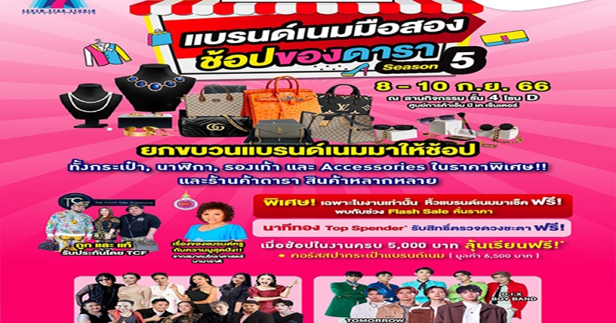 ตามหาแรร์ไอเท็มเด็ดๆ ตัวลิมิเต็ด เช็คได้ที่งานนี้ !!! ศูนย์การค้าเอ็ม บี เค เซ็นเตอร์ ร่วมกับ บริษัท เซเว่น สตาร์ สตูดิโอ จำกัด และ DARADAILY ยกขบวนแบรนด์เนมมาให้ช้อปกันจุใจในราคาพิเศษ ในงาน MBK CENTER แบรนด์เนมมือสอง ช้อปของดารา ระหว่างวันศุกร์ที่ 8 - วันอาทิตย์ที่ 10 กันยายน 2566 ลานกิจกรรมชั้น 4 โซน D