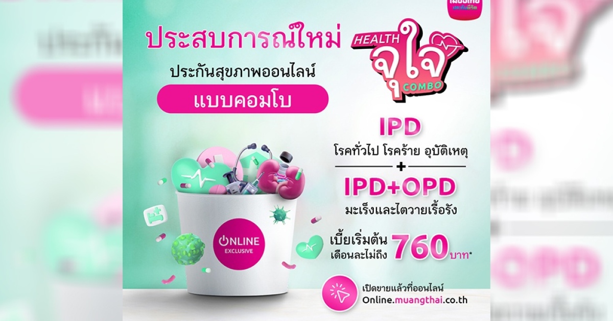 เมืองไทยประกันชีวิต บุกตลาดประกันสุขภาพออนไลน์ ส่งแคมเปญ “Health จุใจ” ตอบโจทย์ครบ คุ้ม เต็มอิ่มกับความคุ้มครองสุขภาพเหมาจ่าย