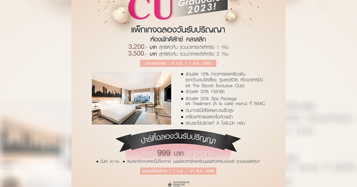 โรงแรมปทุมวัน ปริ๊นเซส จัดแพ็กเกจฉลองวันรับปริญญาของจุฬาลงกรณ์มหาวิทยาลัย ประจำปี 2566