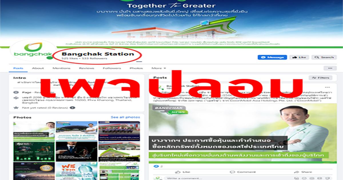 ตามที่ปรากฏว่า มีเพจเฟสบุ๊กใช้ชื่อว่า “Bangchak Station” มีการลอกเลียนเนื้อหา ข่าวสารความเคลื่อนไหวทางธุรกิจ ชักชวนให้ร่วมลงทุน โดยมีการใช้ภาพกิจการ รูปผู้บริหาร และรูปเครื่องหมายการค้าของบริษัท บางจาก คอร์ปอเรชั่น จำกัด (มหาชน) ซึ่งก่อให้เกิดความเข้าใจผิดว่าอาจเป็นเพจของบริษัท บางจากฯ และทำให้สาธารณชนเกิดความสับสนและเข้าใจผิดในข้อเท็จจริงได้นั้น