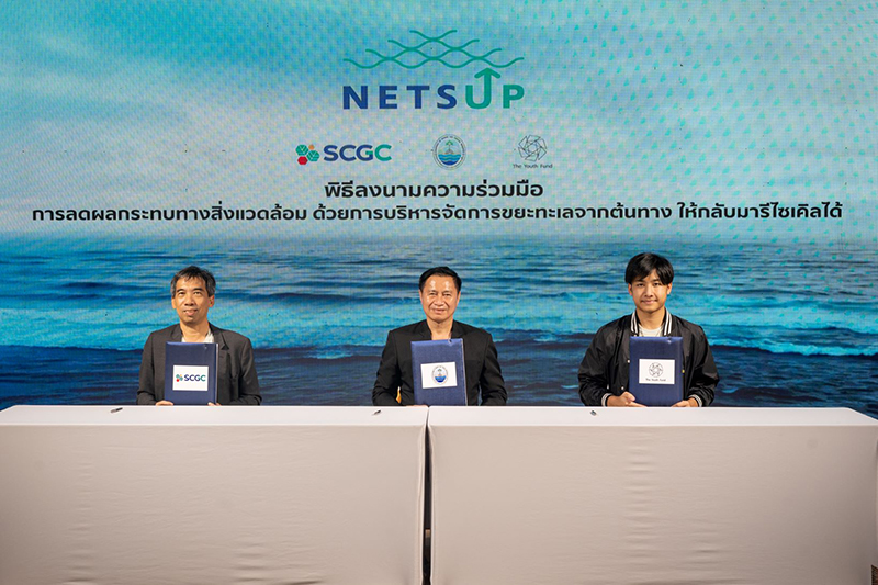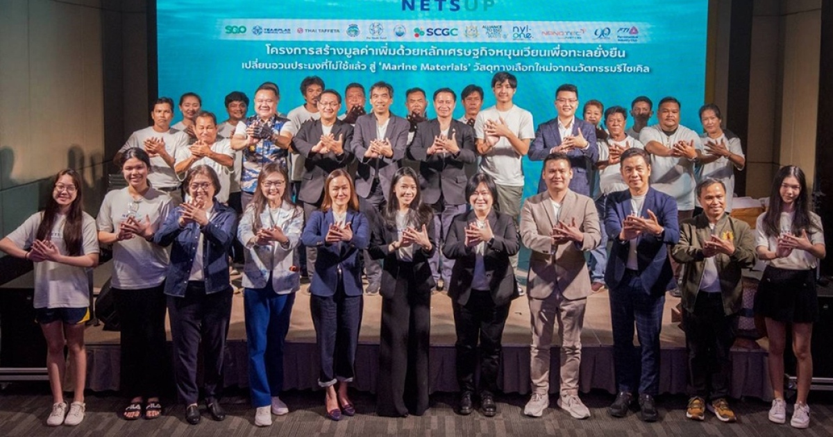 SCGC ร่วมกับกระทรวงทรัพย์ฯ และภาคีเครือข่าย เปิดตัวโมเดล Nets Up สร้างมูลค่าเพิ่มด้วยนวัตกรรมเศรษฐกิจหมุนเวียน เปลี่ยนอวนประมงไม่ใช้แล้ว สู่ Marine Materials วัสดุรีไซเคิล ทางเลือกใหม่เพื่อความยั่งยืน