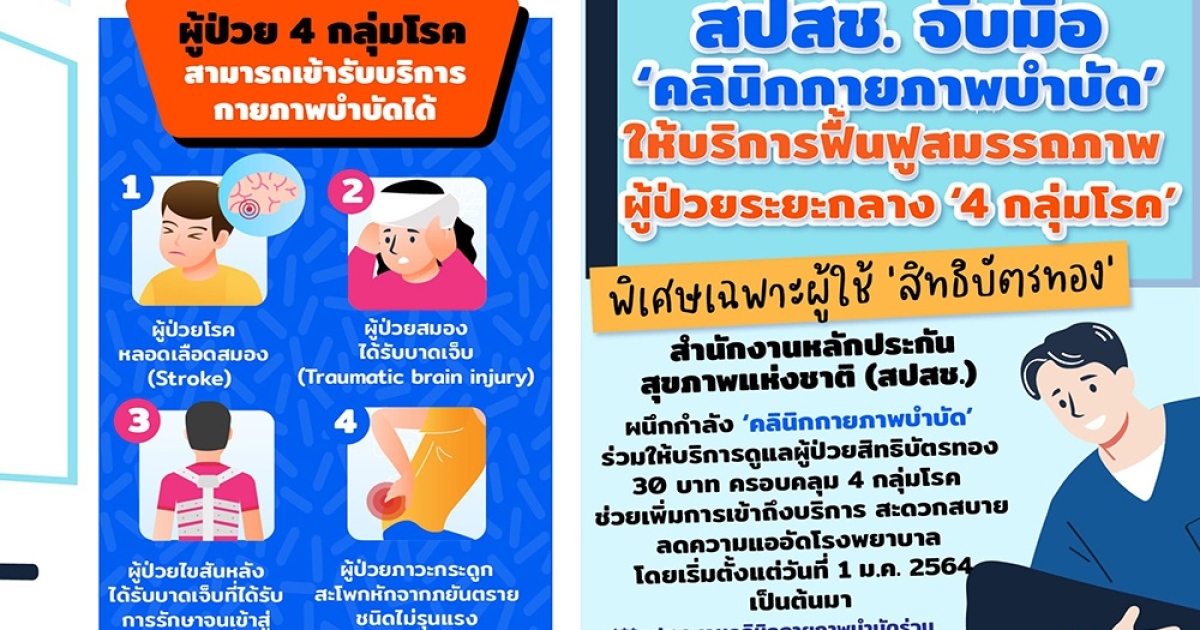 ด้วยเหตุนี้ สปสช. จึงมีแนวคิดกระจายบริการออกไปนอกโรงพยาบาล โดยเชิญชวนภาคเอกชนเข้าร่วมเป็น Public-Private Partnership เอาทรัพยากรของฝั่งเอกชนมาให้บริการประชาชนสิทธิบัตรทองร่วมกับภาครัฐ ขณะที่ สปสช. กระจายงบประมาณไปให้เอกชนที่เข้ามาช่วย เพื่อส่งเสริมให้เกิดการให้บริการที่เพิ่มมากขึ้น ทำให้การเข้าถึงบริการง่าย สะดวกและทั่วถึงมากขึ้น เบื้องต้น กลุ่มอาการที่ สปสช. ให้สิทธิประโยชน์ในการรับบริการกายภาพบำบัดในคลินิกเอกชน เบื้องต้นจะมีทั้งหมด 4 กลุ่มอาการนี้ก่อน คือ 1.หลอดเลือดสมองแตก 2.คนไข้ที่ได้รับอุบัติเหตุทางสมอง 3.กลุ่มที่ได้รับบาดเจ็บกระดูกสันหลัง และ 4. กลุ่มที่สะโพกหักชนิดไม่ร้ายแรง ซึ่งในกรณีที่มีผู้บาดเจ็บและได้รับการรักษาจนพ้นวิกฤตแล้ว จะเป็นช่วงฟื้นฟู แทนที่จะให้ให้มาโรงพยาบาล แพทย์อาจมองว่าคิวในโรงพยาบาลยาวและมีเครือข่ายคลินิกกายภาพบำบัดในย่านนั้น ก็สามารถส่งตัวผู้ป่วยไปรับบริการที่คลินิกกายภาพบำบัดใกล้บ้านได้