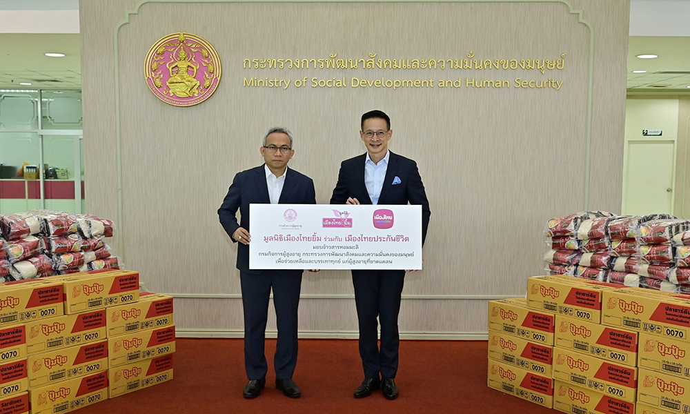 เมืองไทยประกันชีวิต และ มูลนิธิเมืองไทยยิ้ม ส่งมอบเครื่องบริโภคให้แก่กระทรวงการพัฒนาสังคมและความมั่นคงของมนุษย์ เพื่อบรรเทาทุกข์ประชาชนที่เดือดร้อน
