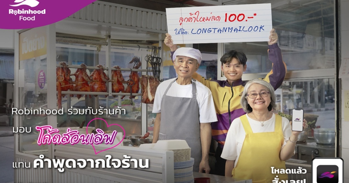 Robinhood ดึงกลยุทธ์การตลาด Emotional Marketing จับอินไซต์ความห่วงใยจากใจร้านค้าถ่ายทอดผ่านแคมเปญ “โค้ดส่วนเลิฟ” มอบโค้ดส่วนลดสูงถึง 100 บาท สำหรับลูกค้าใหม่ Robinhood Food
