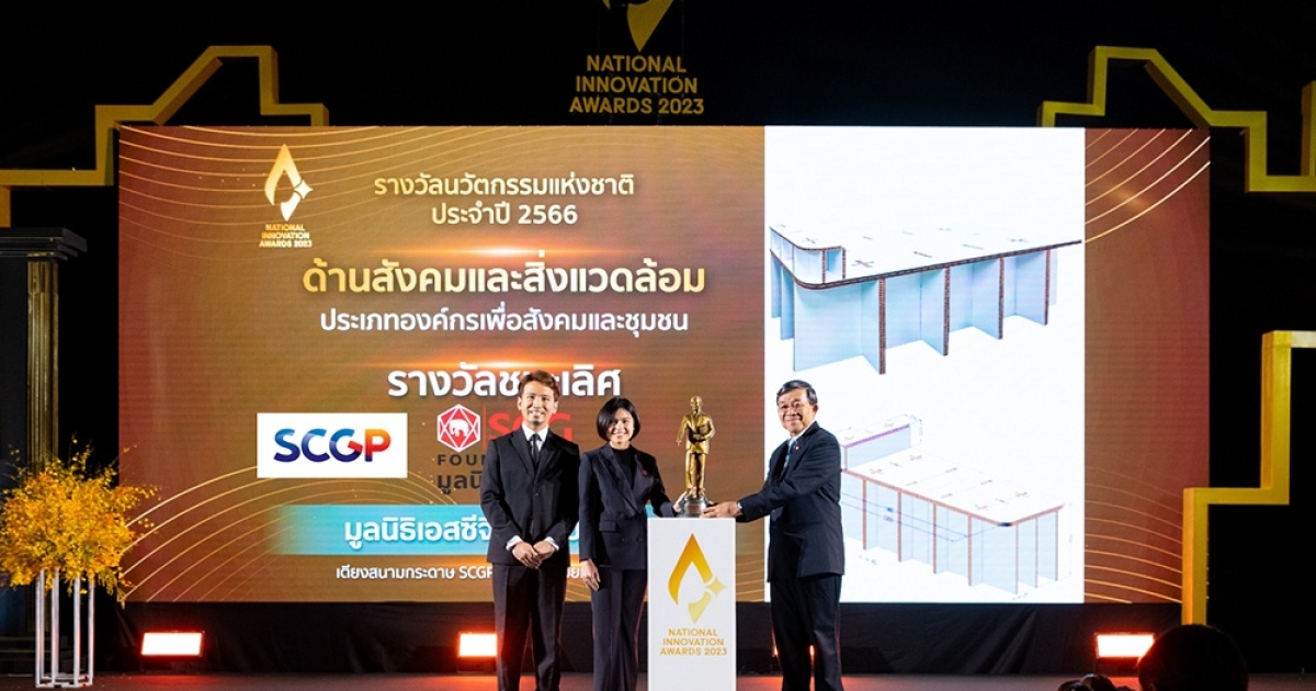 มูลนิธิเอสซีจี ผนึกกำลัง นักศึกษาหลักสูตรประกาศนียบัตรธรรมาภิบาลทางการแพทย์สำหรับผู้บริหารระดับสูง (ปธพ.) โดยมูลนิธิธรรมาภิบาลทางการแพทย์ และแพทยสภา และ SCGP เดินหน้าสร้างประโยชน์ด้านการแพทย์และสาธารณสุขให้สังคมอย่างต่อเนื่อง ล่าสุด ได้รับรางวัลนวัตกรรมแห่งชาติประจำปี 2566 ในสาขาด้านสังคมและสิ่งแวดล้อม องค์กรเพื่อสังคมและชุมชน จากสำนักงานนวัตกรรมแห่งชาติ (NIA) ด้วยผลงาน “นวัตกรรมเตียงกระดาษ สำหรับออกหน่วยเเพทย์เคลื่อนที่” ที่ร่วมกันสร้างสรรค์โดยทีมนักออกแบบ SCGP มูลนิธิเอสซีจี และ ปธพ. โดยต่อยอดจากเตียงสนามกระดาษที่เคยรองรับผู้ป่วยโควิด 19 ให้สามารถตอบโจทย์การใช้งานสำหรับการปฏิบัติงานของแพทย์และการใช้บริการของผู้ป่วยในหน่วยแพทย์เคลื่อนที่ได้อย่างเหมาะสม ปลอดภัย และเคลื่อนย้ายได้อย่างสะดวก นอกจากตอกย้ำความคิดสร้างสรรค์แล้ว ยังช่วยลดความเหลื่อมล้ำในสังคมได้อีกทางหนึ่งด้วย โดยนายสุชาณัฐ ชิดไทย Exhibition and Creative Lifestyle Design Manager - SCGP นางสาวจีรานุช ช่อเกตุ Manager-Partnership Engagement - SCGF เข้ารับโล่รางวัลจาก รศ.นพ. สรนิต ศิลธรรม ประธาน คณะกรรมการนวัตกรรมแห่งชาติ