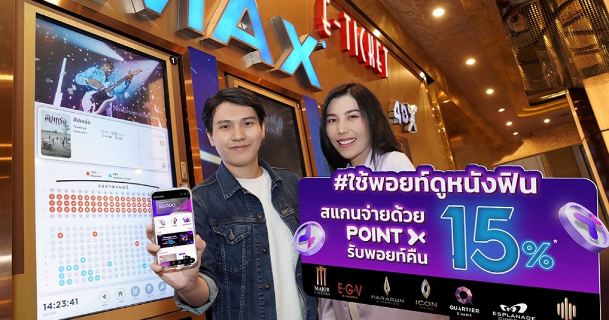 “PointX” (พอยท์เอกซ์) แพลตฟอร์มที่รวมทุกคะแนนสะสมไว้ในที่เดียว เปลี่ยนประสบการณ์การใช้และสะสมพอยท์แบบไร้ขีดจำกัดให้สามารถใช้พอยท์ได้เหมือนเงินสด เอาใจคนชอบดูหนัง ส่งแคมเปญ “ใช้พอยท์ดูหนังฟินรับคืนคุ้ม” เพียงใช้ PointX สแกนจ่ายค่าบัตรชมภาพยนตร์ หรือค่าอาหารและเครื่องดื่มที่โรงภาพยนตร์ในเครือ เมเจอร์ ซีนีเพล็กซ์ ทุกสาขา ทั่วประเทศ (Major Cineplex, EGV Cinemas, Paragon Cineplex, ICON CINECONIC, Quartier CineArt, Esplanade Cineplex และ Seacon Cineplex) รับพอยท์คืน 15% จำกัดพอยท์คืนสูงสุด 10,000 PointX / ท่าน/ สัปดาห์ ตั้งแต่วันที่ 23 ตุลาคม 2566 - 31 ธันวาคม 2566 โดยพอยท์พิเศษจะคืนเข้าบัญชี PointX ในวันจันทร์ถัดไปทุกสัปดาห์