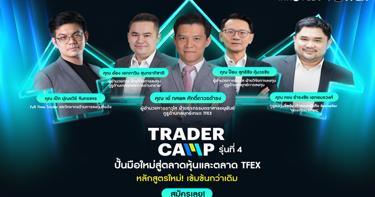 “Trader Camp by InnovestX รุ่นที่ 4” อันแน่นไปด้วยกิจกรรมติวเข้มทั้งในรูปแบบ Online และ Onsite ที่รวบรวมทุกองค์ความรู้และเผยทุกเคล็ดลับการเทรด อาทิ คอร์สติวเข้มเทรดหุ้นและ TFEX เทคนิคการจับกลยุทธ์การเทรดหุ้นและ TFEX , เทคนิคจากกูรูขั้นเซียน ในหัวข้อถอดรหัสวิธีคิดเทรดเดอร์มืออาชีพ นอกจากนี้ผู้เรียนจะได้ Workshop ฝึกเทรดกับผู้เชี่ยวชาญตัวจริงพร้อมกิจกรรมแข่งขันเทรด ชิงถ้วยและเงินรางวัล พร้อมรับใบรับรอง (E-Certificate) จาก InnovestX หลังจบหลักสูตร และเปิดโอกาสให้ผู้เข้าร่วมได้ลงสนามเพื่อทดลองเทรดในสถานการณ์จริงกับผู้เชี่ยวชาญการลงทุนจาก บล. อินโนเวสท์ เอกซ์ นำโดย “คุณเอ๋-ทศพล ศักดิ์ถาวรดำรง” ผู้อำนวยการอาวุโส ฝ่ายธุรกรรมตราสารอนุพันธ์ กูรูด้านกลยุทธ์การเทรดในตลาด TFEX “คุณอ๋อง-เอกภาวิน สุนทราภิชาติ” ผู้อำนวยการ ฝ่ายวิจัยการลงทุน กูรูด้านเทคนิคและการอ่านกราฟ และ “คุณป๊อบ-สุทธิชัย คุ้มวรชัย” ผู้อำนวยการอาวุโส ฝ่ายวิจัยการลงทุน กูรูด้านกลยุทธ์การลงทุน ตลอดจนกูรูผู้ทรงคุณวุฒิ และมากประสบการณ์ อาทิ คุณเป๊ก-ปุณยวีร์ จันทรขจร Full Time Trader คุณหยง-ธำรงชัย เอกอมรวงศ์ กูรูลงทุนชื่อดัง เจ้าของหนังสือ Bestseller "หยงเกิดมาเทรด" ที่จะมาร่วมเปิดประสบการณ์และถอดรหัสวิธีการคิดตามแบบฉบับนักเทรดมืออาชีพ เพื่อให้นักลงทุนไทยสามารถแสวงหาโอกาสและสร้างรายได้จากการลงทุนในตลาดหุ้นและตลาด TFEX ในทุกสภาวะตลาด โดย Trader Camp by InnovestX ได้มีการเปิดให้ความรู้การลงทุนมาแล้ว 3 ครั้งในปีนี้ และมีนักลงทุนใน Community เรามากกว่า 4,300 คนที่ผู้เข้าร่วมจะได้แลกเปลี่ยนความรู้ลงทุนกับเพื่อนๆ นักลงทุนด้วยกัน