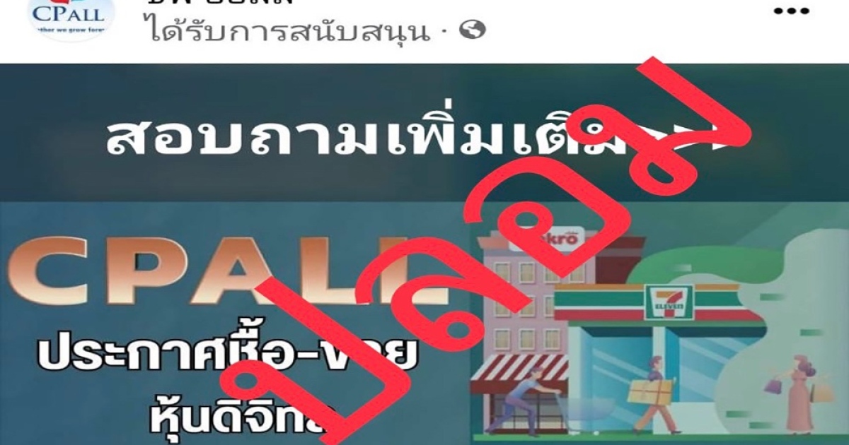 อย่าตกเป็นเหยื่อ อย่าหลงเชื่อ ซีพี ออลล์ ชี้ขณะนี้มีเพจปลอมและแอบอ้างการลงทุนลงใน Social รูปแบบต่างๆ ยืนยันไม่ใช่ของบริษัท
