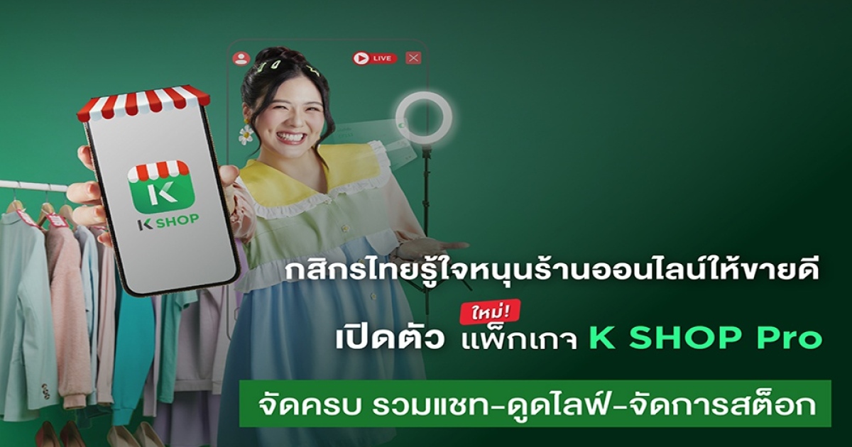 กสิกรไทยรู้ใจร้านออนไลน์ เปิดตัวแพ็กเกจ K SHOP Pro จัดเต็มฟีเจอร์เด็ด รวมแชท-ดูดไลฟ์-จัดการสต็อก ให้ค้าขายคล่องอัปยอดขายพุ่ง