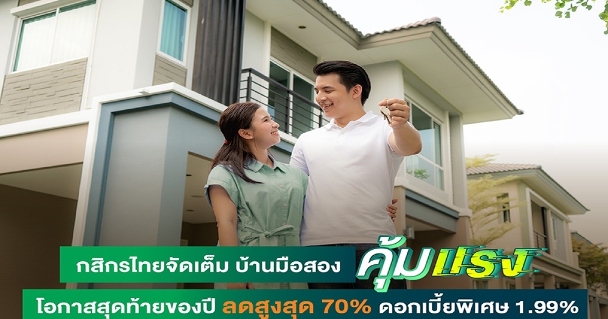 กสิกรไทยจัดเต็ม บ้านมือสอง “คุ้มแรง” โอกาสสุดท้ายของปี ลดสูงสุด 70% ดอกเบี้ยพิเศษ 1.99%