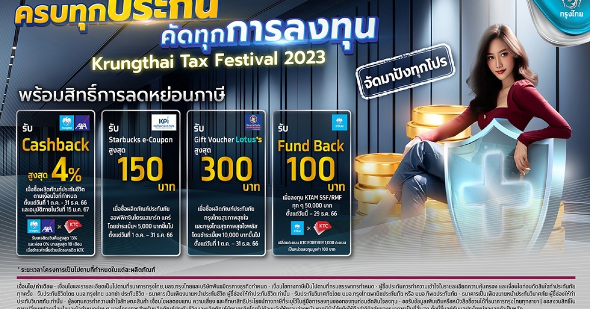 โค้งสุดท้าย! ลดหย่อนภาษีสุดคุ้ม กับ “Krungthai Tax Festival” คัดโปรเด็ด “ประกัน-กองทุน” วันนี้ถึงสิ้นปี 2566