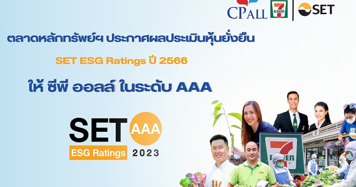ตลาดหลักทรัพย์ฯ ประกาศผลประเมินหุ้นยั่งยืน SET ESG Ratings ปี 2566 ให้ ซีพี ออลล์ ในระดับ AAA