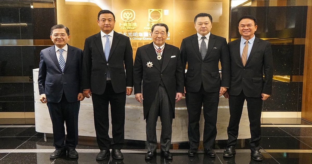 บรรยายภาพ - นายสุภกิต เจียรวนนท์ ประธานกรรมการ เครือเจริญโภคภัณฑ์ พร้อมด้วย นายหยาง เสี่ยวผิง รองประธานอาวุโส เครือเจริญโภคภัณฑ์ นายโรเบิร์ต เหอ และนายโจ ชิบิน ร่วมแสดงความยินดีในโอกาสที่นายธนินท์ เจียรวนนท์ ได้รับเครื่องราชฯ ชั้นสูงจากญี่ปุ่น
