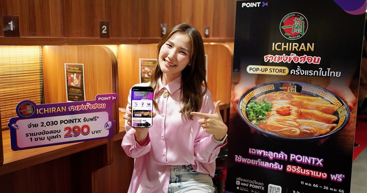 ครั้งแรกในไทย! สาวกราเมงตัวจริงห้ามพลาด ใช้ PointX จ่ายแทนเงินสด 2,030 PointX แลกรับฟรี! ราเมงข้อสอบ 1 ชาม ที่ ICHIRAN Ramen Pop Up Store