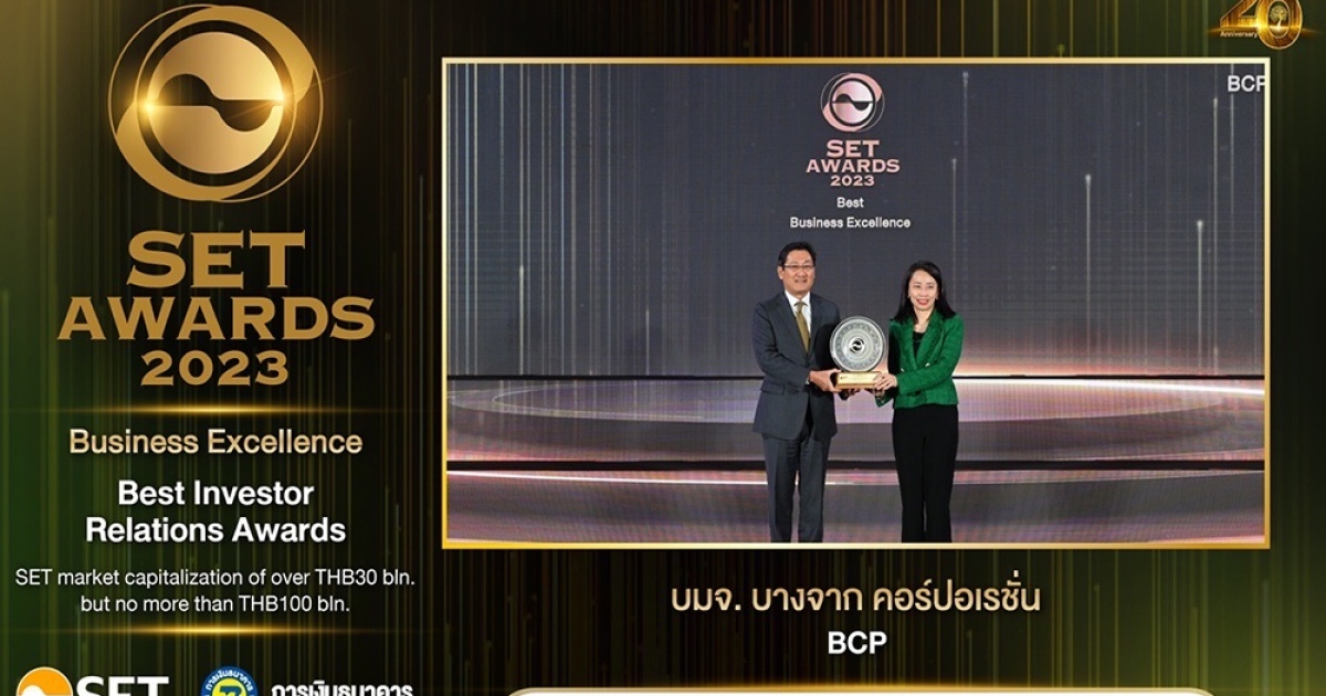 กลุ่มบริษัทบางจาก คว้า 2 รางวัล ดำเนินงานยอดเยี่ยมด้านนักลงทุนสัมพันธ์ จาก SET Awards 2023
