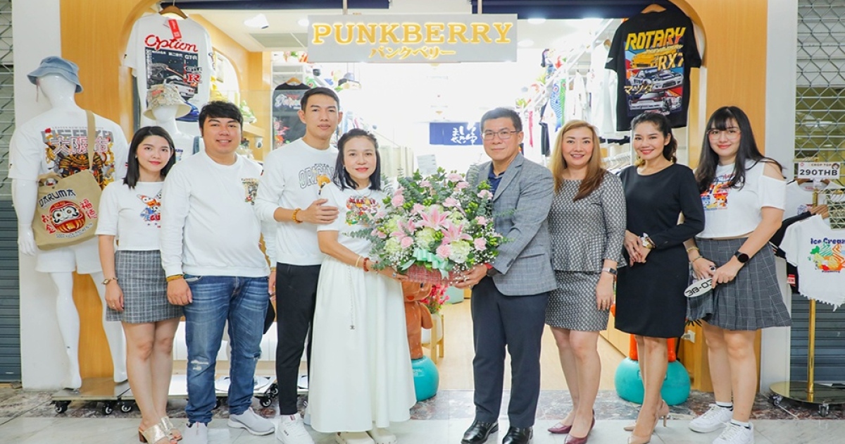 เอ็ม บี เค เซ็นเตอร์ มอบดอกไม้แสดงความยินดีเปิดร้านใหม่ PUNK BERRY เสื้อยืดสกรีนสไตล์ญี่ปุ่น