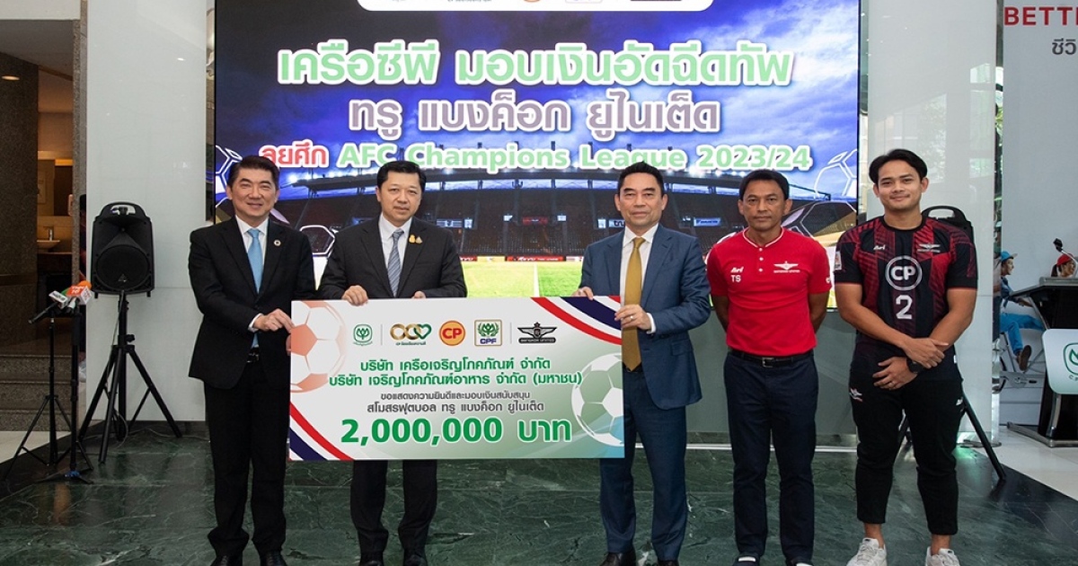 เมื่อวันที่ 7 ธันวาคม 2566 - เครือเจริญโภคภัณฑ์ (ซีพี) โดย นายศุภชัย เจียรวนนท์ ประธานคณะผู้บริหาร พร้อมด้วย นายประสิทธิ์ บุญดวงประเสริฐ ประธานคณะผู้บริหาร บมจ.เจริญโภคภัณฑ์อาหาร (ซีพีเอฟ) มอบเงินสนับสนุนจำนวน 2 ล้านบาทอัดฉีดเป็นขวัญและกำลังใจแก่สโมสรฟุตบอลทรู แบงค็อก ยูไนเต็ด (True Bangkok United) หลังจากที่เอาชนะไลออน ซิตี้ เซเลอร์ส ทีมจากสิงคโปร์ เมื่อวันที่ 29 พฤศจิกายนที่ผ่านมา ถือเป็นนัดการันตีว่าทีมทรูแบงค็อกฯได้เข้ารอบ 16 ทีมสุดท้ายในศึกการแข่งขันฟุตบอลถ้วยที่ใหญ่ที่สุดของทวีปเอเชีย AFC Champions League 2023/2024 สร้างประวัติศาสตร์หน้าใหม่ให้กับทีมสโมสรฟุตบอลของประเทศไทย โดยซีอีโอ เครือซีพี ให้คำมั่นพร้อมอัดฉีดเพิ่มหากทำผลงานได้ดีในรอบถัด ๆ ไป ทั้งนี้พิธีมอบเงินอัดฉีดเพื่อเป็นขวัญกำลังใจแก่สโมสรฯทรู แบงค็อก ยูไนเต็ด ได้จัดขึ้น ณ อาคารทรู ทาวเวอร์ ถนนรัชดาภิเษก โดยนายขจร เจียรวนนท์ ประธาน สโมสรฯทรู แบงค็อก ยูไนเต็ด นำทีมนักเตะแข้งเทพ ผู้ฝึกสอน และทีมงาน ขอบคุณเครือซีพีและซีพีเอฟที่อัดฉีดให้กำลังใจ ประกาศพร้อมสู้ศึกในรอบถัดไปอย่างมุ่งมั่น มองเกมต่อเกม เพื่อนำชัยชนะกลับมา บรรยากาศเต็มไปด้วยความอบอุ่นท่ามกลางการแสดงความยินดีของเหล่าผู้บริหาร และพนักงานที่เป็นแฟนคลับ ที่มาร่วมแสดงความยินดีความสำเร็จของทรู แบงค็อก ยูไนเต็ด และส่งมอบกำลังใจในการสู้ศึกรอบถัด ๆ ไป