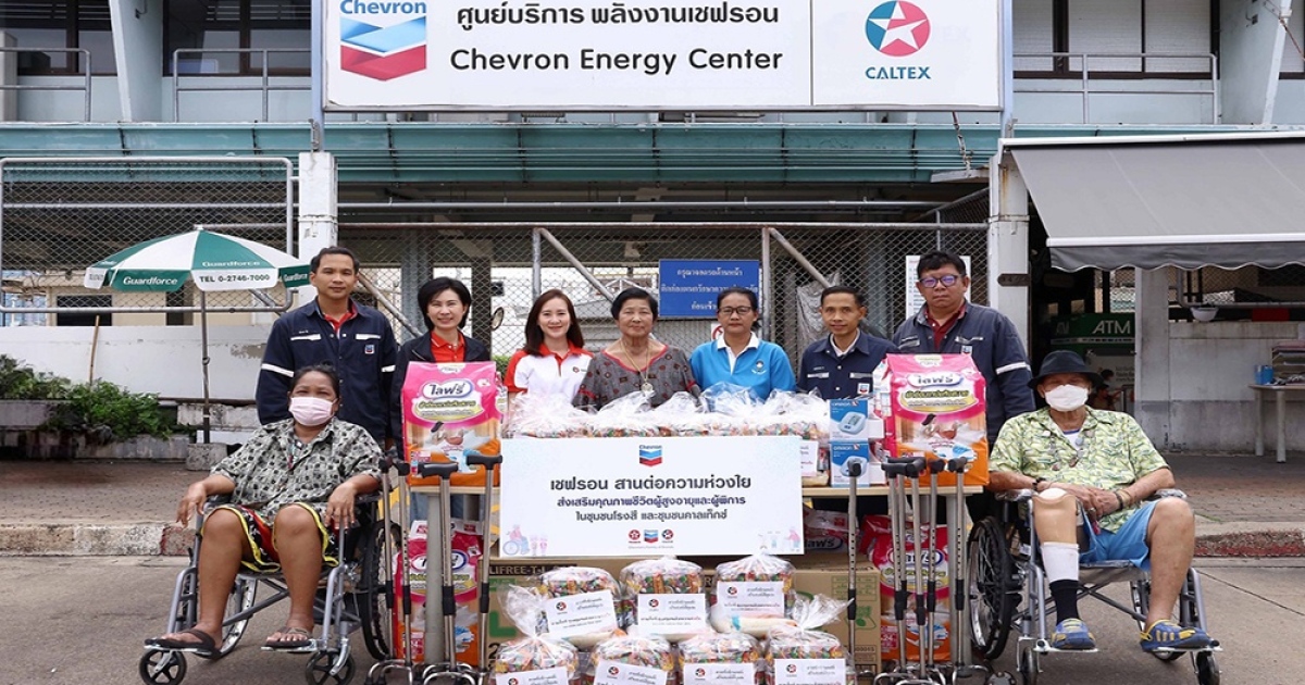 เมื่อเร็ว ๆ นี้ บริษัท เชฟรอน (ไทย) จำกัด ผู้ผลิตและจัดจำหน่ายผลิตภัณฑ์หล่อลื่นภายใต้แบรนด์คาลเท็กซ์ นำโดย นายพรชัย พึ่งคุณไตรรัตน์ ผู้จัดการฝ่ายปฏิบัติการ (ที่ 2 จากขวา) และ นายรัชดาพล สมบัติ หัวหน้าฝ่ายปฏิบัติการคลังน้ำมันและทางเรือ (ขวาสุด) จัดกิจกรรม “คาลเท็กซ์รวมพลัง สร้างสรรค์เพื่อชุมชน” ประจำปี 2566 สานต่อความห่วงใยแก่ชุมชนเพื่อนบ้านรอบศูนย์บริการพลังงานเชฟรอน มอบเครื่องอุปโภคบริโภคและอุปกรณ์เสริมสำหรับ ผู้สูงอายุ ผู้พิการ และผู้ป่วยติดเตียง อาทิ รถเข็น ไม้เท้าพยุงเดิน เครื่องวัดความดัน และผ้าอ้อมผู้ใหญ่ เพื่อส่งเสริมสุขอนามัยและคุณภาพชีวิตแก่ชุมชน พร้อมปรับปรุงซ่อมแซมเครื่องออกกำลังกายในพื้นที่ลานกีฬาอเนกประสงค์ของชุมชน โดยมี นางมะลิ ธิติธนธนกุล ประธานชุมชนโรงสี (กลาง) และ นางสุนันทา ทัศนสุคนธ์ ประธานชุมชนคาลเท็กซ์ (ที่ 3 จากขวา) เป็นตัวแทนรับมอบ ณ ศูนย์บริการพลังงานเชฟรอน ถนนพระรามที่ 3 กรุงเทพฯ