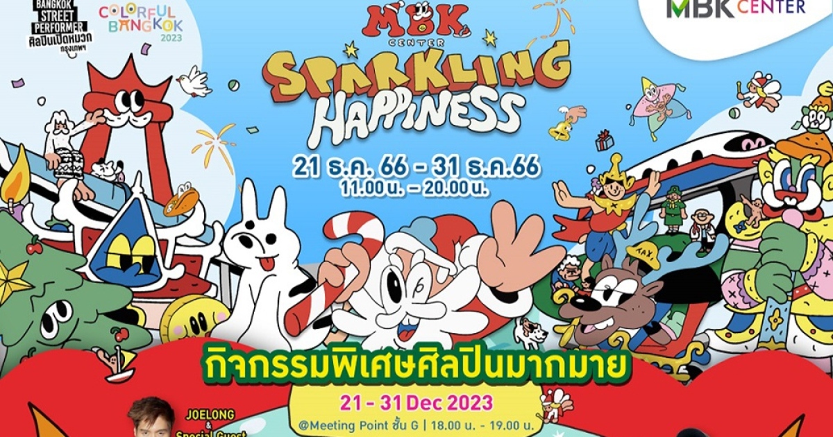 เชื่อมต่อความสุข เอนจอยทุกโมเมนต์ ศูนย์การค้าเอ็ม บี เค เซ็นเตอร์ ชวนปล่อยจอยปล่อยใจในงาน MBK CENTER SPARKLING HAPPINESS MUSIC ตั้งแต่วันนี้ถึงอาทิตย์ที่ 31 ธันวาคม 2566 บริเวณ Meeting Point ชั้น G โซน A พบกับศิลปินมากมาย ยกขบวนกันมาฉลองเทศกาลแห่งความสุขส่งท้ายปี ดังนี้