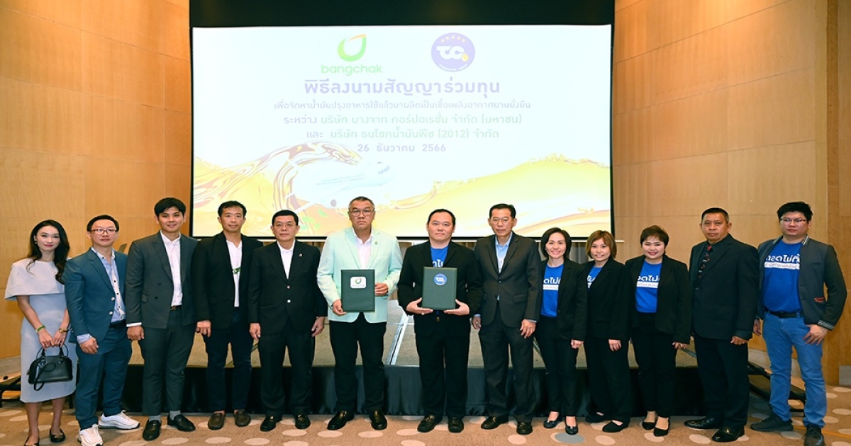 บางจากฯ – ธนโชคน้ำมันพืช (2012) ลงนามสัญญาร่วมทุน เดินหน้ารุก การบริหารจัดการน้ำมันปรุงอาหารใช้แล้วมาผลิตเป็นเชื้อเพลิงอากาศยานยั่งยืน SAF