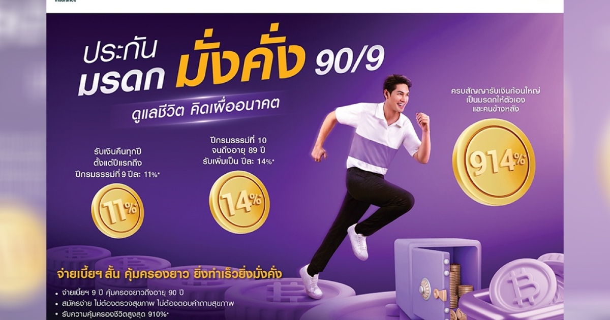 ภายใต้กลยุทธ์ Digital Bank with Human Touch ของธนาคาร โดยมีเป้าหมายที่จะรักษาความเป็นผู้นำในธุรกิจการบริหารความมั่งคั่ง ด้วยการใช้เทคโนโลยีและการบริการอย่างไร้รอยต่อ เราเล็งเห็นเทรนด์ประชากรศาสตร์ของประเทศไทย ที่คนมีคุณภาพชีวิตและสุขภาพดีขึ้น ส่งผลให้มีแนวโน้มอายุยืนยาวนานมากขึ้น ธนาคารฯ จึงเปิดศักราชปี 2567 นี้ด้วยการเปิดตัวประกันมรดก มั่งคั่ง 90/9 ที่มาพร้อมสโลแกนดูแลชีวิต คิดเผื่ออนาคต ซึ่งเป็นประกันชีวิตแบบตลอดชีพที่ธนาคารคิดเผื่อให้ผู้ที่ต้องการวางแผนทางการเงิน และส่งต่อมรดก ให้สามารถสร้างกระแสเงินสดให้ตนเอง และสร้างความมั่งคั่งให้คนที่รักและห่วงใยในอนาคตได้ โดยจุดเด่นของประกันมรดก มั่งคั่ง 90/9 คือชำระเบี้ยประกันภัย 9 ปี คุ้มครองชีวิตยาวถึงอายุ 90 ปี สามารถสร้างกระแสเงินสดให้ลูกค้าได้ในระยะยาว ในรูปแบบของเงินคืนรายปีตั้งแต่ปีแรกจนถึงอายุ 89 ปี ทุกปี สูงสุดถึงปีละ 14% ของจำนวนเงินเอาประกันภัย รับเงินก้อนเมื่อครบสัญญา 914% ของจำนวนเงินเอาประกันภัย รับประกันภัยตั้งแต่อายุ 20 – 70 ปี สมัครง่ายไม่ต้องตรวจและไม่ต้องตอบคำถามสุขภาพ และในกรณีที่เกิดเหตุการณ์ไม่คาดฝันรับเงินก้อนเป็นมรดกให้ทายาทสูงสุดถึง 910% ของจำนวนเงินเอาประกันภัย