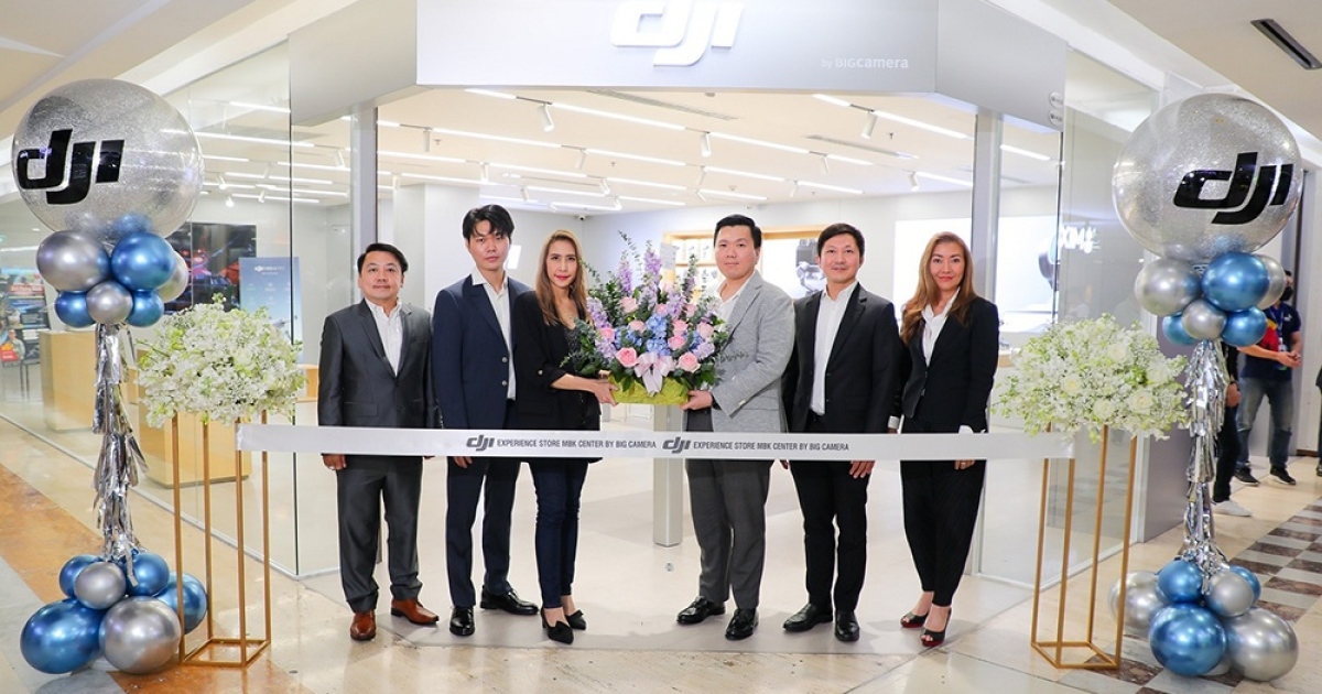 นางสาวชวรมย์ มังคละคีรี (ที่ 3 จากซ้าย) ผู้อำนวยการฝ่ายขายพื้นที่เช่า 2 พร้อมด้วย นางสาวอรวรรณ จึงประเสริฐศรี (ที่ 6 จากซ้าย) ผู้อำนวยการฝ่ายร้านค้าสัมพันธ์ บริษัท เอ็ม บี เค จำกัด (มหาชน) นำทีมร้านค้าสัมพันธ์มอบกระเช้าดอกไม้แสดงความยินดีแก่ นายธนสิทธิ์ เธียรกาญจนวงศ์ (ที่ 4 จากซ้าย) กรรมการผู้จัดการ บริษัท บิ๊ก คาเมร่า คอร์ปอเรชั่น จำกัด (มหาชน) เนื่องในโอกาส Grand Opening ฉลองเปิดร้านใหม่ DJI Experience Store MBK Center by BIG Camera ศูนย์รวมสินค้ากลุ่มโดรน DJI ที่ใหญ่และครบครันที่สุด พร้อมบริการครบวงจร ทั้งการซ่อมบำรุง การรับประกัน และการขึ้นทะเบียนโดรน นำทีมโดย DJI Product Specialist ผู้ชำนาญการพิเศษที่จะคอยดูแลและให้คำปรึกษาอย่างใกล้ชิด ณ ชั้น 5 โซน C ศูนย์การค้าเอ็ม บี เค เซ็นเตอร์ เมื่อเร็ว ๆ นี้