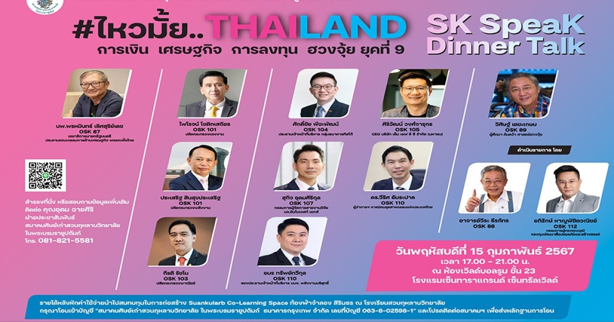 สมาคมศิษย์เก่าสวนกุหลาบวิทยาลัยฯ ชวนอัพเดทเทรนด์น่ารู้ พร้อมฟังเสวนาทิศทางเศรษฐกิจไทยในงาน SK SpeaK Dinner Talk #ไหวมั้ย..Thailand