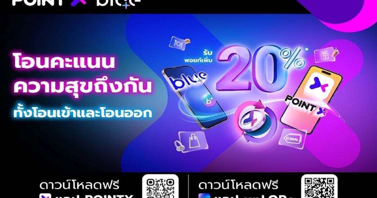 PointX จับมือ blueplus+ ส่งแคมเปญต้อนรับปีมังกรทอง เพียงโอนคะแนนความสุขถึงกัน ระหว่างสมาชิก blueplus+ และ PointX รับพอยท์เพิ่ม 20%