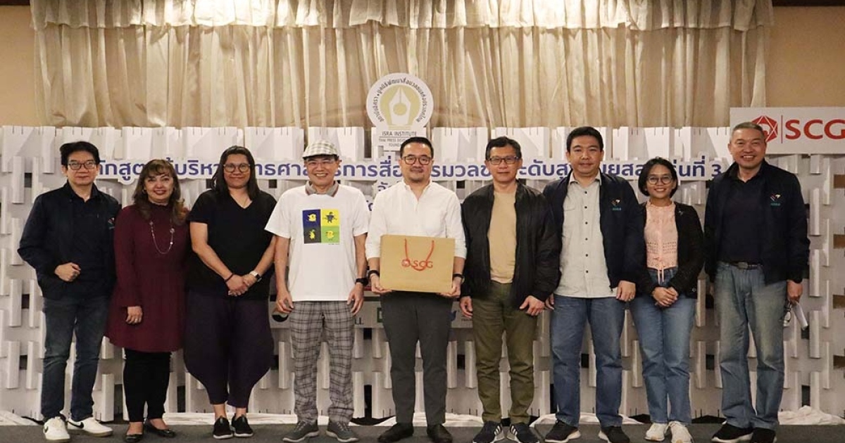 นายประสงค์ เลิศรัตนวิสุทธิ์ ผู้อำนวยการบริหารสถาบันอิศรา พร้อมด้วย นางศิริรัตน์ เบ็ญจสมิตโยธิน รองประธานรุ่น เป็นตัวแทนผู้เข้าอบรมหลักสูตรผู้บริหารยุทธศาสตร์การสื่อสารมวลชนระดับสูง (บยสส.) รุ่นที่ 3 ให้การต้อนรับ ผศ.ดร.ธานี ชัยวัฒน์ ผู้อำนวยการศูนย์วิจัยเศรษฐศาสตร์พฤติกรรมและการทดลอง จุฬาลงกรณ์มหาวิทยาลัย ในโอกาสบรรยายหัวข้อ คอร์รัปชันในสังคมไทย จัดโดย สถาบันอิศรา มูลนิธิพัฒนาสื่อมวลชนแห่งประเทศไทย โดยมีสมาชิกรุ่นร่วมต้อนรับ เมื่อวันเสาร์ที่ 17 กุมภาพันธ์ 2567 ณ ห้องพาโนรามา 2 ชั้น 14 โรงแรม ดิ เอมเมอรัลด์ - กรุงเทพฯ ถนนรัชดาภิเษก
