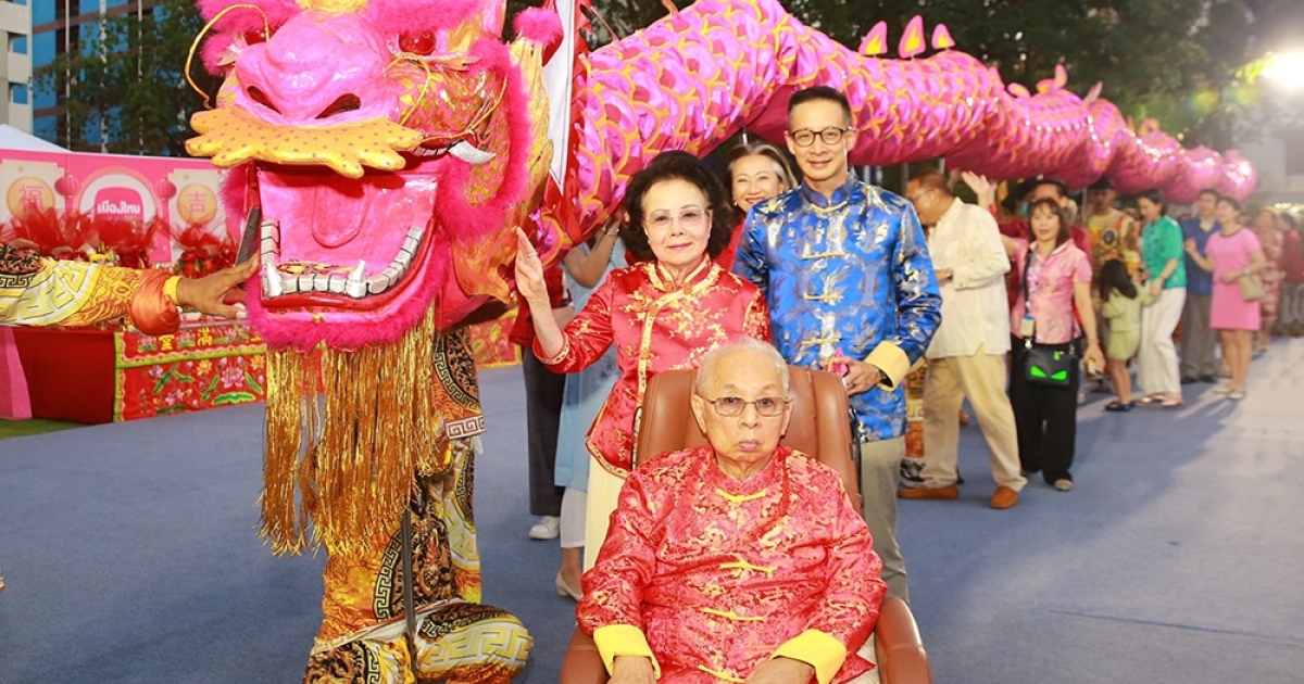 ทั้งนี้ ภายในงานเริ่มลำดับพิธีด้วยคณะผู้บริหารอัญเชิญองค์เทพมา ณ แท่นประทับ ถวายเครื่องสักการะพระโพธิสัตว์กวนอิม เทพเจ้ากวนอู และ 5 พญาเทพเจ้ามังกร ตามด้วยคณะผู้บริหาร ผู้มีเกียรติร่วมงาน และพนักงาน ร่วมสักการะองค์เทพ การแสดงเชิดมังกรชมพูและสิงโต ปิดท้ายด้วยคณะผู้บริหาร ผู้มีเกียรติ และพนักงานร่วมพิธีลอดใต้ท้องมังกรชมพู.